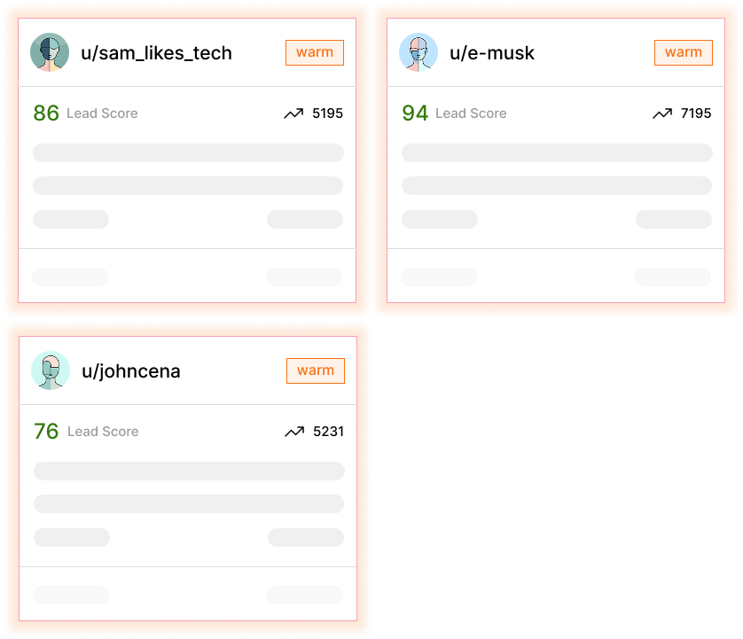 Turn Reddit lurkers into customers with automated lead identification and built-in CRM management.